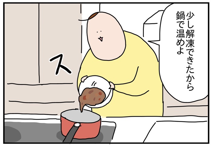 冷凍のカレーを電子レンジでちょっと温めて鍋で温めようとしたよ奇跡