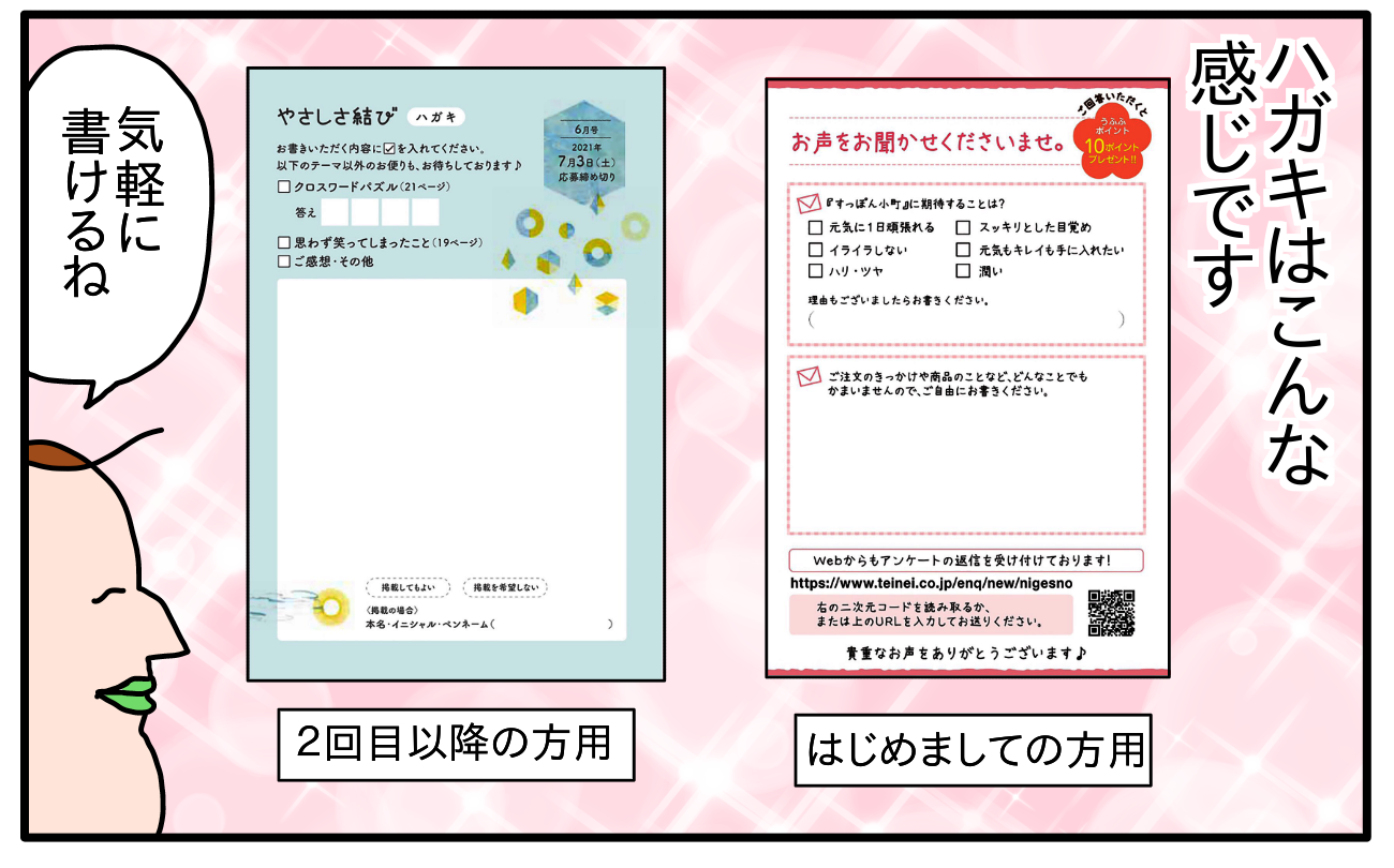 アンケートハガキが付いてきて