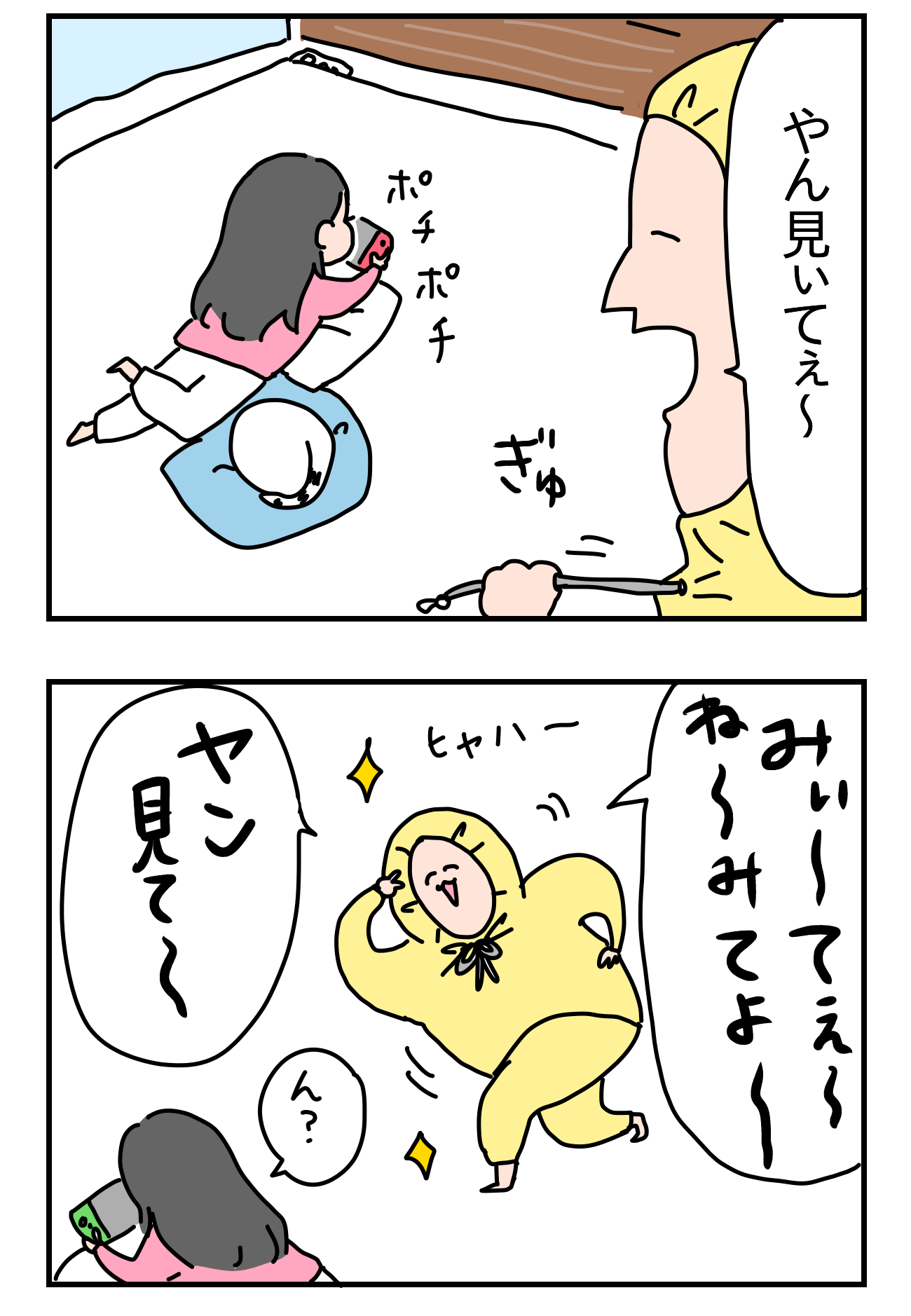 見て欲しい 2020年02月11日 なんか知らんが見て欲しいいつも見て見ていう子供の気持ちが分かった気がした見てくれると嬉しいね============================コメントありがとうございます全て嬉しく読ませて頂いてます!============================▽本(2020年2月14日発売予定)つんのいちぞく [単行本]つんKADOKAWA2020-02-14▽インスタ▽LINEスタンプ販売中です▽ぽちっとお願いします! 「ヤン(娘)」カテゴリの最新記事 タグ :#見て#ヤン < 前の記事次の記事 > コメント コメント一覧 (8) 1. mami 2020年02月11日 17:09 ぐでたまの人みたい(笑) 2. あさみ 2020年02月11日 22:54 見ぃてぇ〜 の言い方、YouTuberのはいじぃかと思った 3. わお 2020年02月12日 00:25 やさしいかわいい家族だなぁ(^^) 4. 浅海 2020年02月12日 06:53 つんさんかわいいな… 5. あーたん 2020年02月12日 13:54 ちゃんと笑ってくれるヤンちゃん優しい。 6. こへ 2020年02月12日 14:07 そもそも何をしているのか 7. たくあん 2020年02月13日 01:20 相手を見るって愛だなぁ 8. なか 2020年02月16日 01:01 短歌になってて最高ですww コメントフォーム 名前 コメント 評価する リセット リセット 顔 星 投稿する 情報を記憶