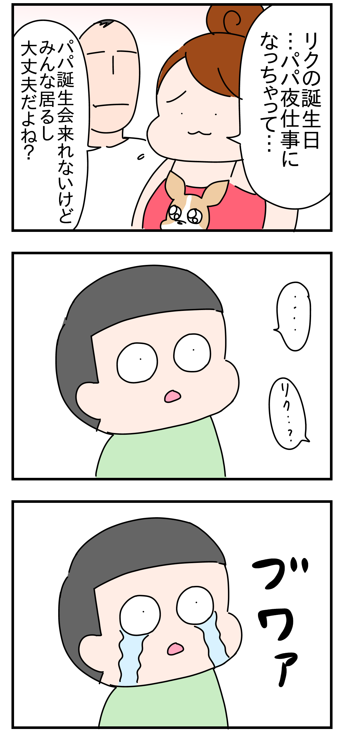 リクの誕生日② 2020年08月26日 前回の話▽ ここまで欲されてスマイリーヒロシそしてヒロシ不在の誕生日が始まる…!次でおわります============================コメントありがとうございます全て嬉しく読ませて頂いてます!============================▽書籍つんのいちぞく [単行本]つんKADOKAWA2020-02-14▽インスタ▽LINEスタンプ販売中です▽ぽちっとお願いします! カテゴリなしの他の記事 タグ :#リク#誕生日#ヒロシ < 前の記事次の記事 > コメント コメント一覧 (7) 1. しー 2020年08月26日 21:46 求められてヒロシ😂 2. なまえがなしこ 2020年08月26日 22:11 前は蜘蛛だのなんだのと言われていたのに(笑) リクくんきゃわわわ 3. ちょむ 2020年08月26日 23:20 わー、それは残念だ! ヒロシさんの分もコメント欄で祝っておこう🎉 ㊗️りくくんお誕生日おめでとうございました㊗️ 元気にすくすく育ってね よい1年になりますように 4. ああああ 2020年08月26日 23:43 愛されてヒロシ 5. コテツ 2020年08月27日 00:05 リク君~~😢 仕方がないけどこれは可哀想ですね… 違う機会にめちゃくちゃ甘やかしてもらおー! 6. タマゴ 2020年08月27日 09:15 前回からハラハラしながら続きを待っていたけれど、安定のリクくんの可愛さ全開でした! 誕生日会当日も、パパ参加の別の誕生日会も素敵な一日になりますように! 7. ピカモン 2020年08月27日 19:04 読んでいてリクくんの涙と同時に自分も泣いてました。何だろ、自分も同じ様な記憶がある様な無い様な。なんか、覚えて無いのに記憶がフラッシュバックしたんですよね。 コメントフォーム 名前 コメント 評価する リセット リセット 顔 星 投稿する 情報を記憶