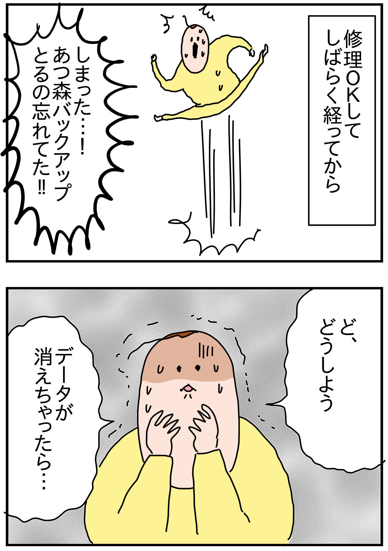 Switchが高温になるので修理に出したら 2020年12月19日 ▽前回の話 switchを修理に出すことを決意そして私は気づいたガタガタガタ…おそるおそる簡単な修理だったかもしれないけど本体をパッカァしてたのに無事で本当よかった…😭そして直ったswitchで遊んでみると…!switchは本来の姿に戻ったのだったあつ森をテレビでずっと出来ることに感動しっぱなしハムジ無事に再会できてよかった〜これから修理に出す方の参考に少しでもなれば!fin ============================コメントありがとうございます全て嬉しく読ませて頂いてます!============================▽書籍つんのいちぞく [単行本]つんKADOKAWA2020-02-14▽インスタ▽LINEスタンプ販売中です 「ゲーム」カテゴリの最新記事 タグ :#あつ森#Switch#修理#ハムジ < 前の記事次の記事 > コメント コメント一覧 (4) 1. うめ吉 2020年12月19日 22:29 Switch無事帰還おめでとうございます! そしてマグネットが届いた私もおめでとう…!!うれしす!! 私の隣に力士が漂ってます( ˶'-'˶) 2. なぎさ 2020年12月20日 23:02 ハムジ!ハムジ可愛いですよねー!私は前作からハムジ大好きであつ森でもずっと探し回ってようやく離島でスカウトできました!毎日緑系の和風のものを貢ぎまくっています。 ニンテンドーの修理センターは今も昔も神対応ですよねー私も何度もお世話になってその度感謝の気持ちでいっぱいになります。 3. mayo 2020年12月21日 02:44 これ初期不良じゃないんだ、無料かと思った。任天堂さんの神対応が発動するかと思っちゃった…図々しい私っ(自分でパンチしながら) 4. ぽよりん 2021年01月15日 10:47 この記事のおかげで私も修理に出す決断ができました〜!! 画面に横線走ってちゃちゃまるが死にかけてたので!! 早く返ってこないかな!!! コメントフォーム 名前 コメント 評価する リセット リセット 顔 星 投稿する 情報を記憶