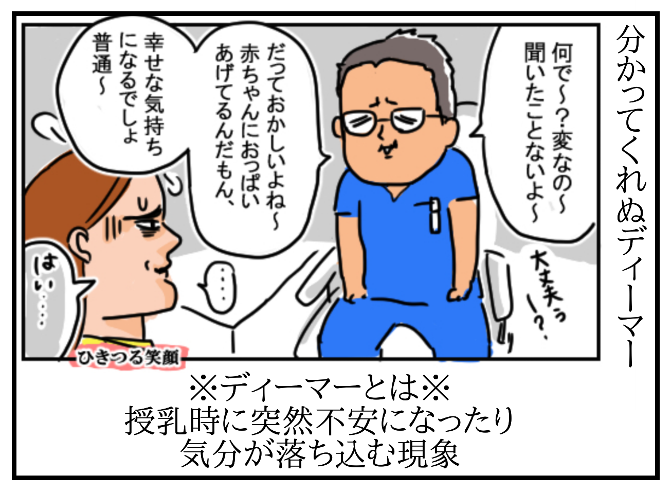 それと、私3人出産してますが3人ともディーマー!ありました!!もう、何とも言えない気分の落ち込みと、その上辛い気持ちが押し寄せるんですよね…