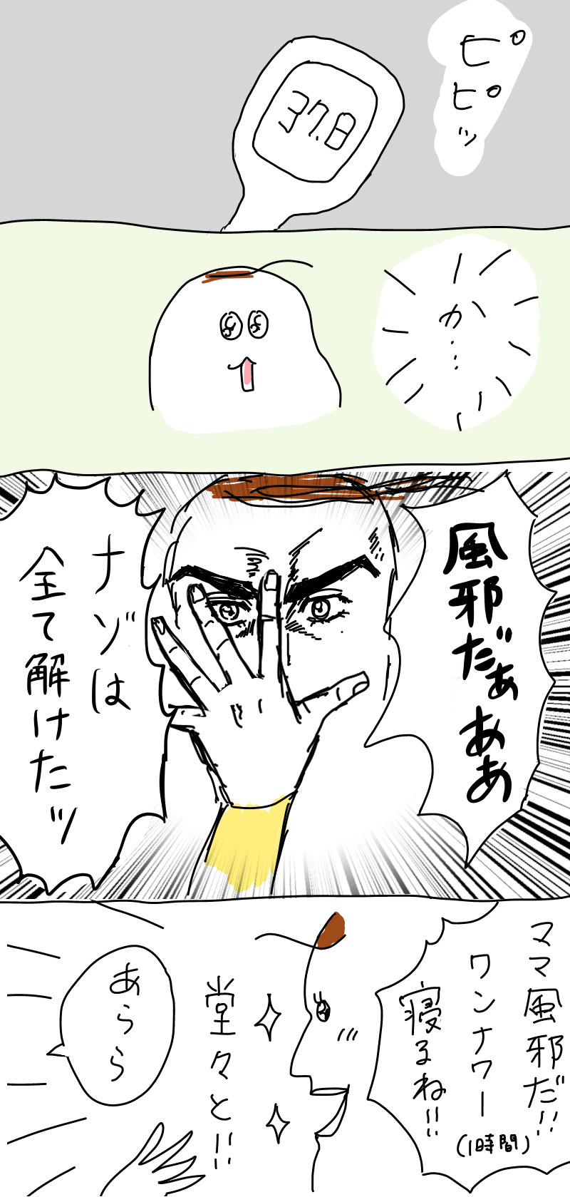 親になると、風邪と気付かず、気付いてもやること色々あってなかなか休めず、いつの間にか乗り越え、また、違う菌と戦う、、💦