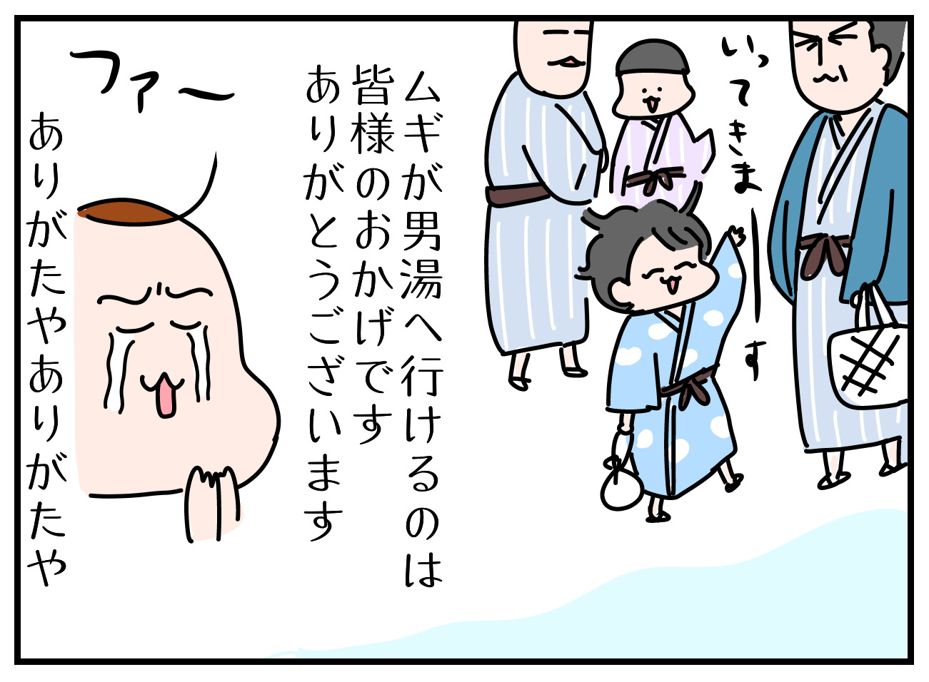 もし我が家3人だけで温泉だったらムギは女湯入れないから部屋の備え付けの風呂しか入れないのです