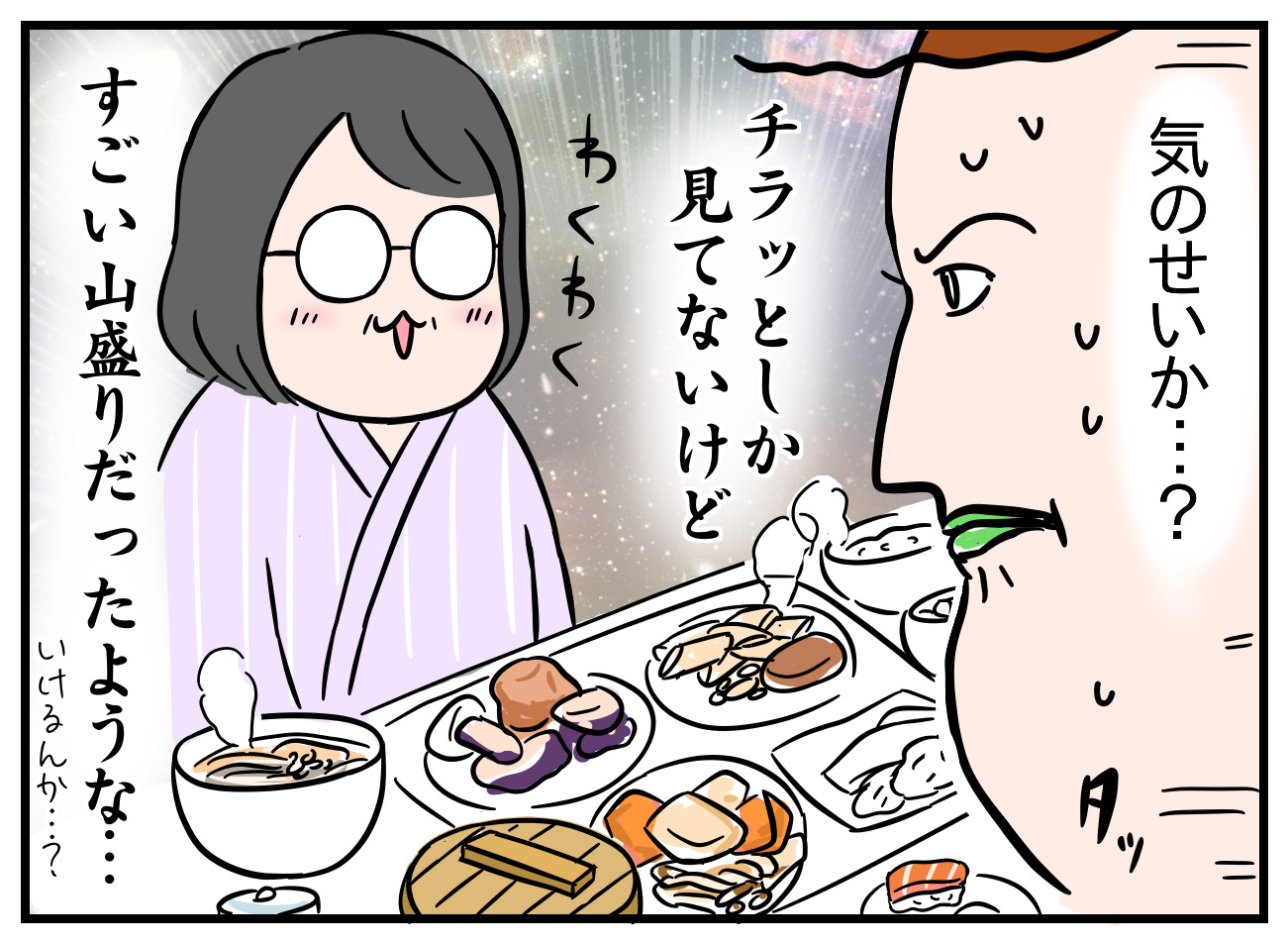 みんなで旅行⑨ バイキング2 2024年02月13日 ▽前回の話 全部自分でできなくてしょんぼりムッギィご機嫌ムギゾーン突入ちょっとずつ取ってて上手だったヤンはネネ達と一緒に取ってとても楽しそうで姉達に感謝💪🙏はたしてばぁばは全部食べられるのか…!つづく▽サーモン ============================コメントありがとうございます全て嬉しく読ませて頂いてます============================▽読者登録▽書籍つんのいちぞく [単行本]つんKADOKAWA2020-02-14▽インスタ▽楽天room▽LINEスタンプ販売中です▽ケーキ カテゴリなしの他の記事 タグ :#旅行#バイキング < 前の記事次の記事 > コメント コメント一覧 (8) 1. ムギムギファン 2024年02月13日 20:33 ワクワクばあば可愛い! 取りすぎちゃう気持ちわかります 美味しそうなものがたくさん並んでて嬉しくなっちゃいますよね✨ 2. ヤンヤン 2024年02月13日 20:41 バイキングあるある マダム世代、絶対食べきれない量を取りがち。 次回のばぁば、フラグが立ってるけど、そのフラグをへし折って欲しい。 さぁどうなる!ばぁば! 3. バイキング大好き💕 2024年02月13日 21:10 ワカルー😆 普段と違う環境で解放感あるし、 美味しそうな物がたっくさんあるし、 テンション上がってアレコレ手を出しちゃうんだよね♪ 最後は「自分はフードファイターだ!」 と言い聞かせつつ口に詰め込んでます(笑) 何より、 据え膳上げ膳が最高✨ 4. のの 2024年02月13日 21:48 ばぁばは全部食べきる!に一票! 旅館のバイキング楽しいですよね。 5. イヌ好き仮面 2024年02月14日 09:40 バイキングはまず一周軽く流し見してからお盆とお皿を持つと上手に選べますね。ムギムギの付き添いの結果的につんさん上手に盛れてそう。 思い出した…幼稚園の頃の初バイキングの記憶… 並んでる料理から自分のお箸でお刺し身を一切れ取り、そのまま口に運ぼうとして親に慌てて止められました。 6. BB 2024年02月14日 09:52 何気なく取って行ったのに、できあがってみたら、雑誌の写真みたいにいい感じに盛り付けできてたら、何かメチャ嬉しいバイキング。 我が家は旅行となると、人数が多く、最大で10人になる事もありますが、それぞれの好き嫌いと個性が現れて、それらを見るのも楽しいな😃 7. くーが 2024年02月14日 22:37 旅行の記事、楽しく読ませていただいています! ムギくんもヤンちゃんも料理とるの上手なんですね~バイキングがより楽しくなりますね! 最後、つんさんが最後に撮ってくるから食べててねの場面、わかりみが深すぎて思わずコメントしてしまいました。私もいつも最後です!アシュラマンみたいに腕がたくさんあったらな~って思います笑 8. usa 2024年02月17日 19:05 えっばーばかわいい💕 でも心配… 続きをまってます☺️ コメントフォーム 名前 コメント 評価する リセット リセット 顔 星 投稿する 情報を記憶