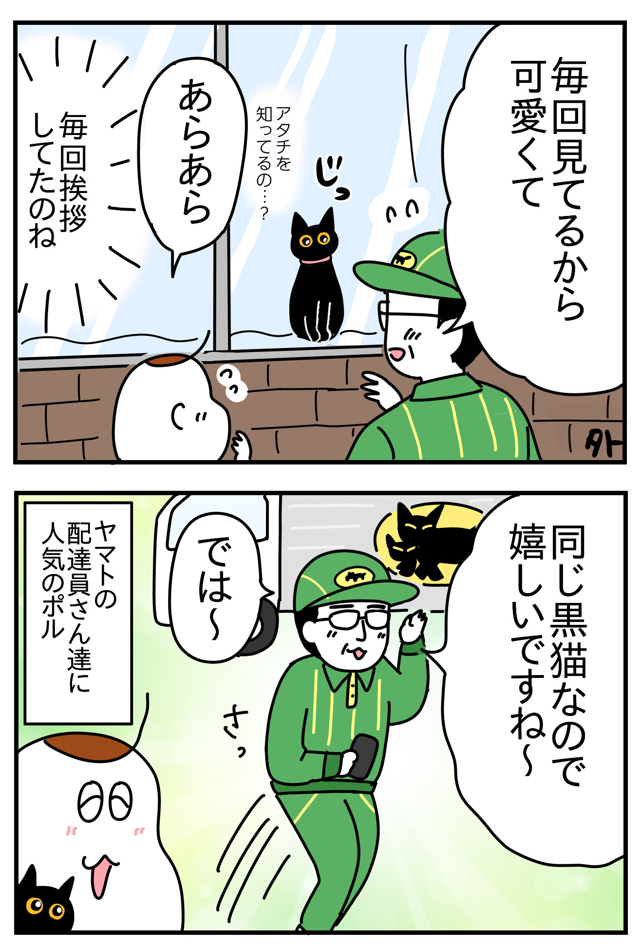 猫の名はポル㉗−2 2025年11月13日 ▽前回の話 アタチハ…ナカマ?✨今もポルちゃんに挨拶してくれたり今日も居ますねって言ってくれたりします優しい🥹🥹つづく▽配達員さんみんな感じ良くてありがてぇ☺️ ============================コメントありがとうございます✨全て嬉しく読ませて頂いてます============================▽読者登録▽無料Kindle一覧はこちら▽書籍つんのいちぞく [単行本]つんKADOKAWA2020-02-14▽インスタ▽楽天room カテゴリなしの他の記事 タグ :#ポル#黒猫#クロネコヤマト < 前の記事次の記事 > コメント コメント一覧 (4) 1. ウェンディ 2025年11月13日 20:41 めっちゃほっこりしてこのお話サイコーです✨ 2. BB 2025年11月14日 00:56 大人気ですね〜🐈⬛ でも、写真で見ると,納得です❣️ 大きなお目々でじっと見つめられたら、とろけそうになるかわいさですもの、、、 3. ぽん 2025年11月14日 17:01 細かく感想伝えたいのに可愛い平和しか出てきません💖 4. はな 2025年11月14日 22:50 ヤマトの配達員さん、いい人が多いイメージです🐈⬛🚚💕 コメントフォーム 名前 コメント 評価する リセット リセット 顔 星 投稿する 情報を記憶